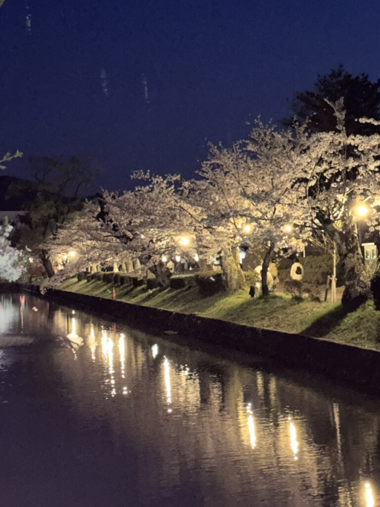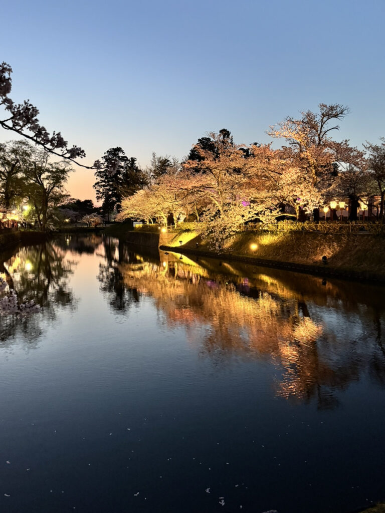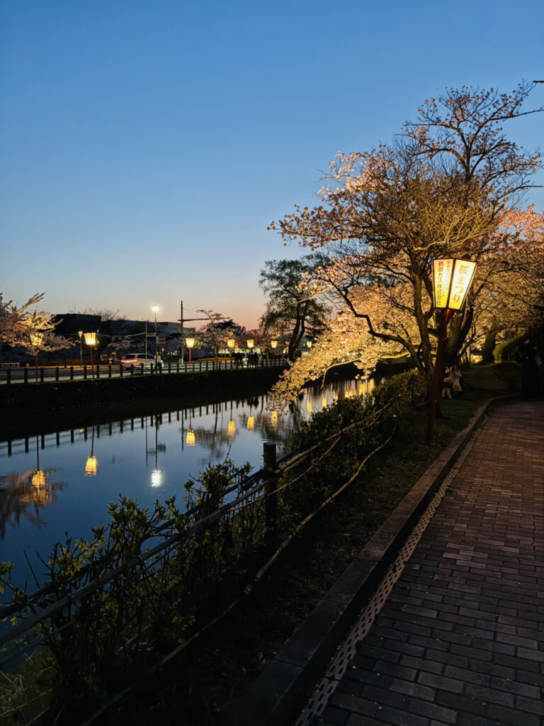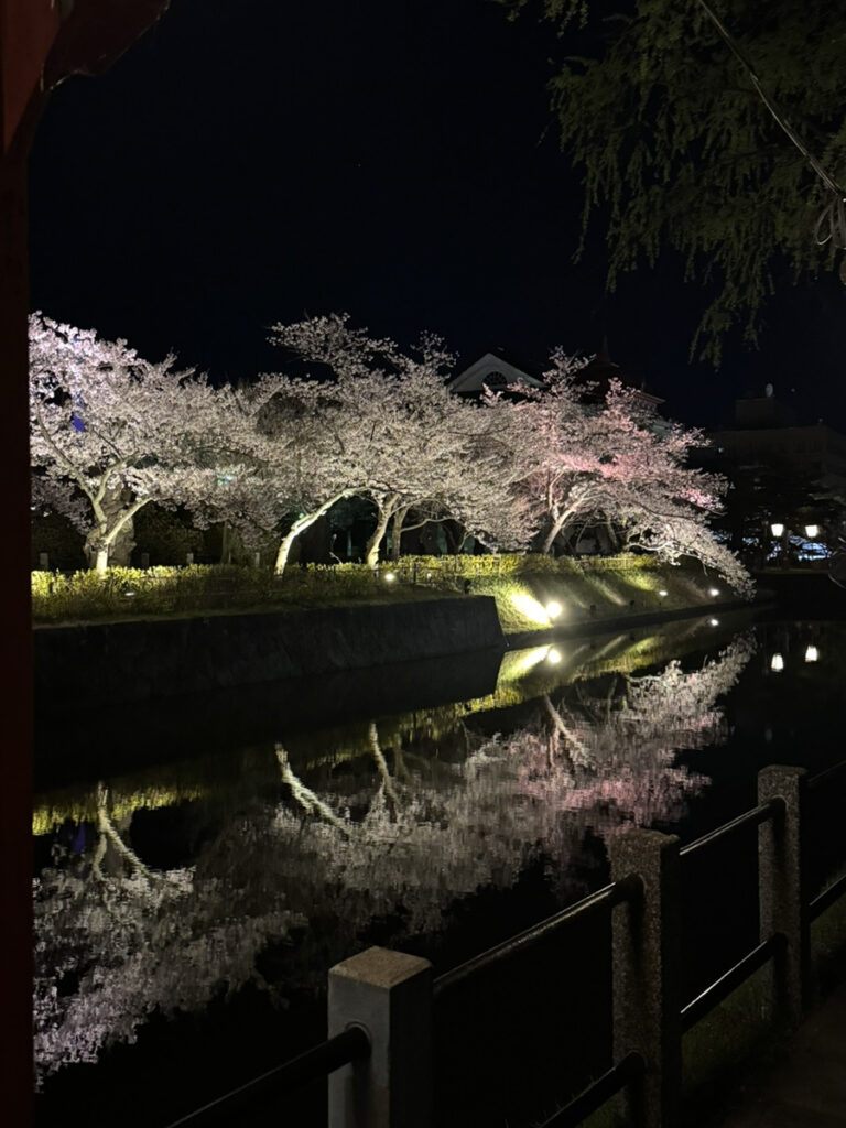 この夜桜は、鶴岡公園で撮影したものになります。日中の桜も綺麗でしたが、ライトアップされた桜もとても綺麗ですよね✨