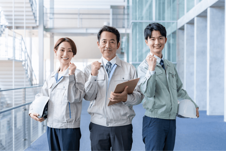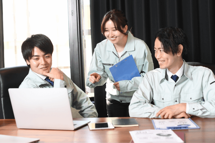 元々、⼈を⼤切にする企業⾵⼟がありますので安全第⼀でベストな体調でしっかり仕事に取り組んでいただくために基本は1社員は掛け持ちなしの1現場しか担当できません。それに加えてほぼ定時での退社、休憩・休⽇の取得の徹底を⾏なっております。
